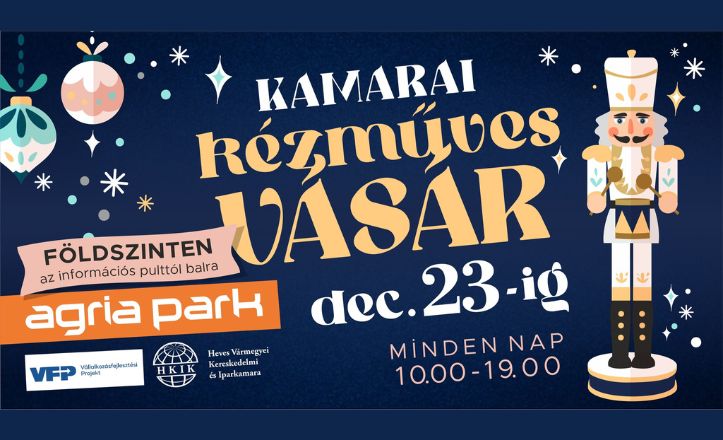 Szeretettel várunk Benneteket az Agria Parkban megrendezett Kamarai Kézműves Vásárra, ahol a Heves Vármegyei Kereskedelmi és Iparkamara kézműipari tagozatának tehetséges és elhivatott alkotói mutatkoznak be.